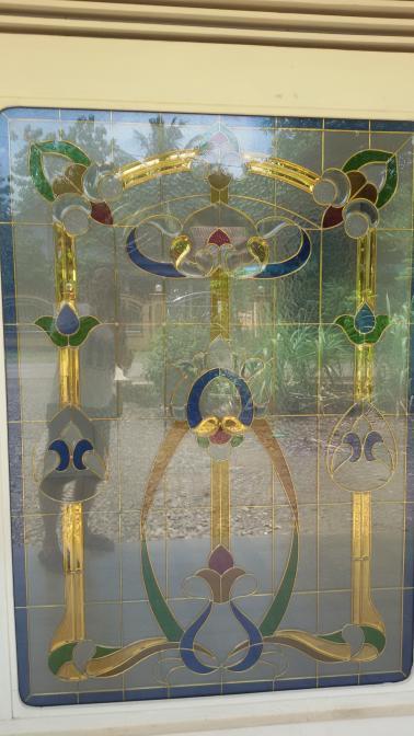 Stained Glass Brass is a rafted glass using brass, where glass assembly consists of several types of glass. Afterwards then in finishing to make it look more interesting. The thickness of the brass stained glass itself is 16mm, where the front and rear of the stained glass itself is coated with clear glass. So safe and not easily broken.