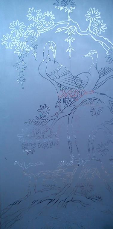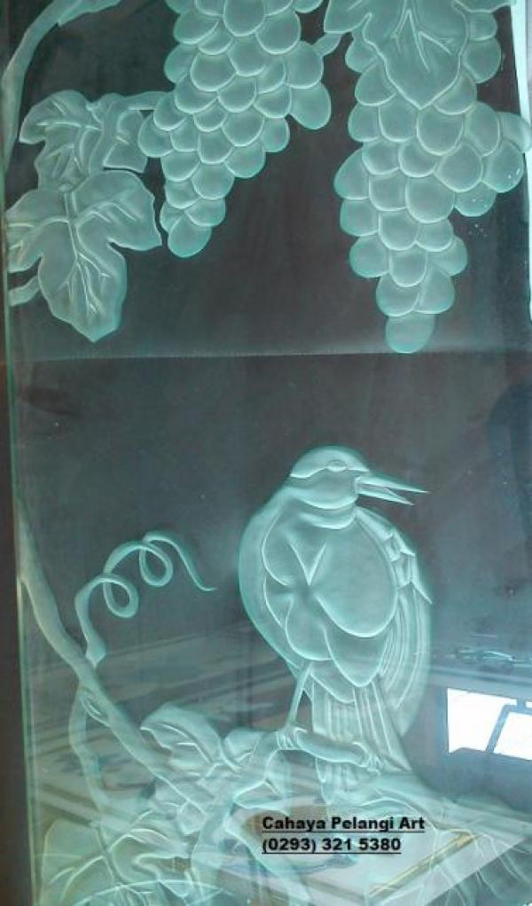 Natural grain glass is a sprayed glass using certain tools and with certain motifs. Natural grain glass gives the impression of life on the glass motif. For the motifs and sizes of glass can adjust according to the needs of consumers.