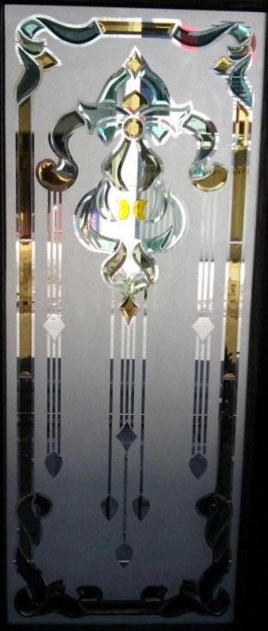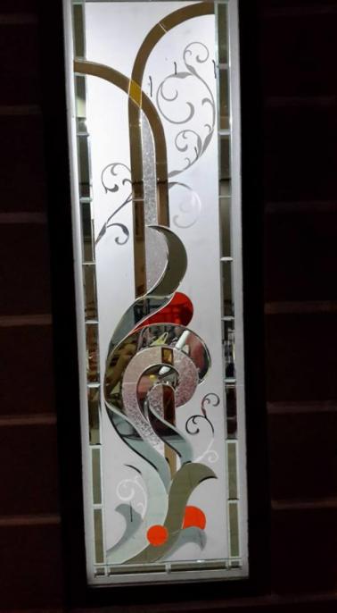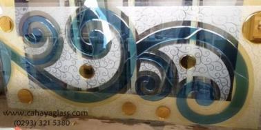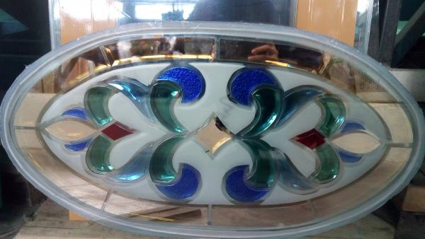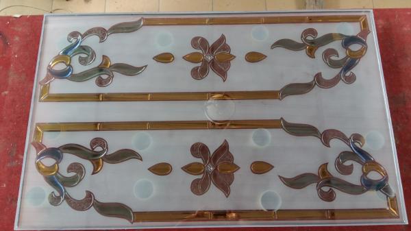 Glass inlay is a decorative glass obtained by inserting several different pieces of glass. With the workmanship technique using a special glue glass. For its own glass inlay the thickness of the glass is 16mm, where the front and rear is covered with 5mm clear glass. For the motifs and sizes of glass can adjust according to the needs of consumers.
