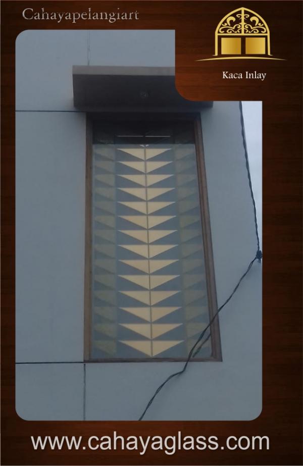 Kaca inlay adalah kaca dekoratif yang diperoleh dengan cara menyisipkan beberapa potongan kaca yang berbeda. Dengan teknik pengerjaan menggunakan lem khusus kaca. Untuk kaca inlay sendiri tebal kacanya adalah 16mm, dimana bagian depan dan belakangnya di lapisi kaca bening 5mm. Untuk motif dan ukuran kaca dapat menyesuaikan sesuai dengan kebutuhan konsumen.