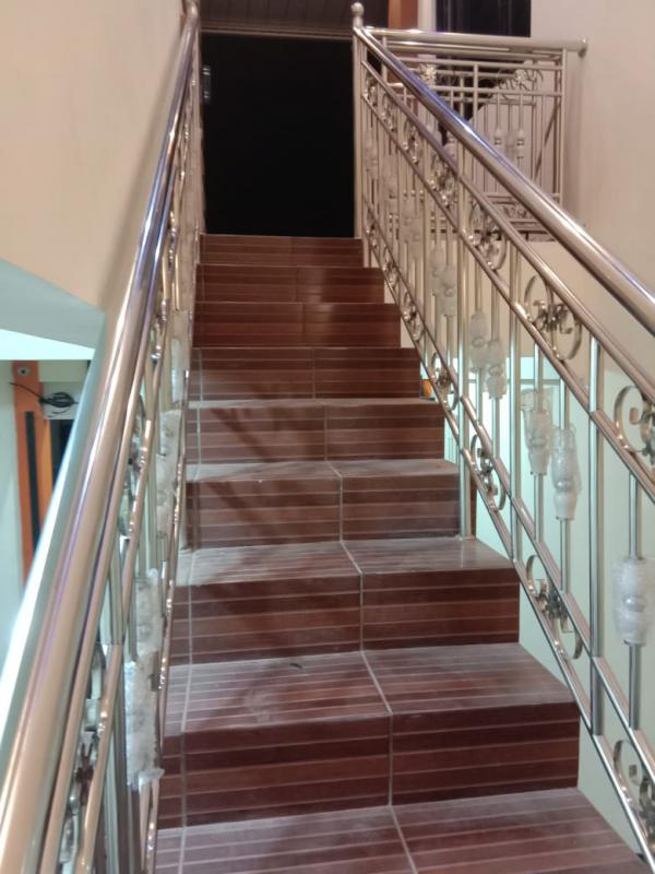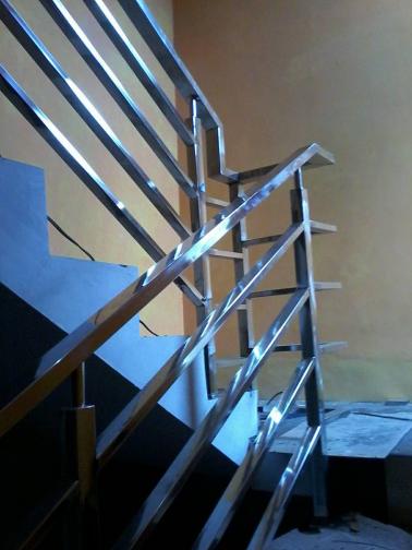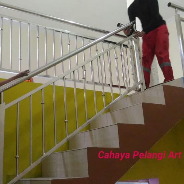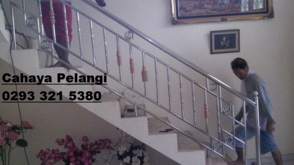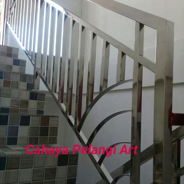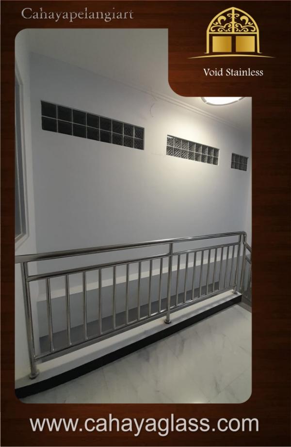 Stainless Steel is an iron compound containing about 10% Chromium which prevents metal metering process so that void or stair railing using stainless is suitable for use because it is not easy to rust. For motifs and sizes can adjust according to the needs of consumers.